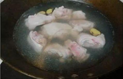 2. 将猪脚清洗干净,切成块状,放入沸水中焯水去腥。